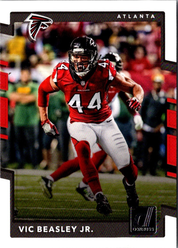 This 2017 Donruss Vic Beasley Jr. #107Atlanta Falcons card is perfect for the serious collector. Featuring a stunning action shot of Vic Beasley Jr. on the front, and a detailed stat sheet on the back, this card captures the heart of the Falcons' defensive leader. Own a piece of history and add this card to your collection today!