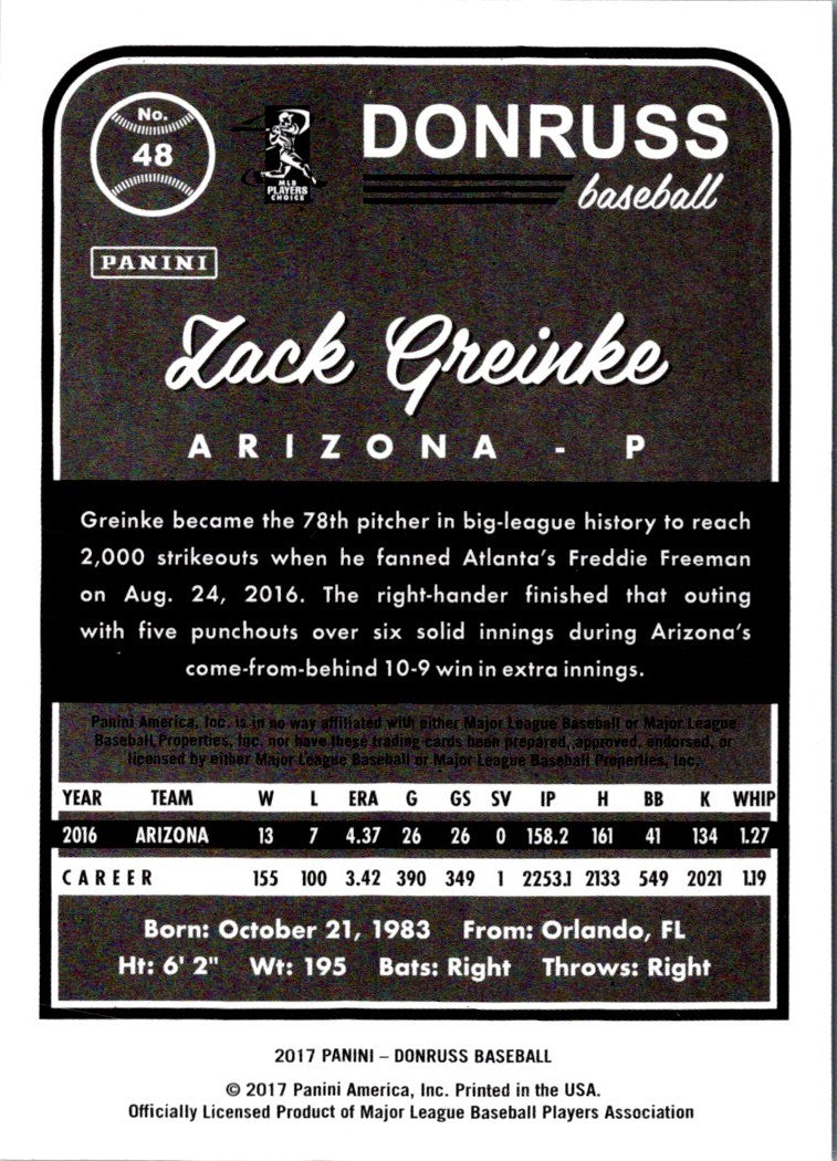 2017 Donruss Zack Greinke #48