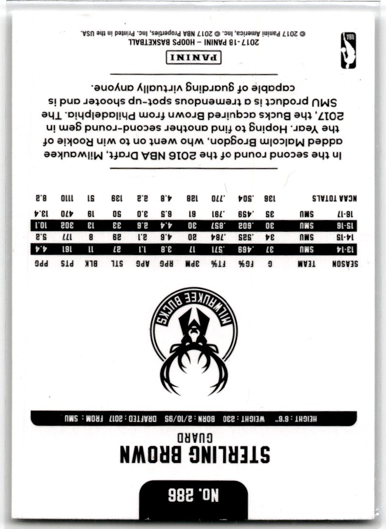 This 2017 Hoops Sterling Brown #286 Milwaukee Bucks card features a stunning image of Brown in his Bucks uniform. Show your support for one of the NBA's top young stars with this limited-edition card. The card's design features a full-color photograph of Brown with a detailed facsimile autograph. Collectors of all ages will love this card, which makes a great gift for any Bucks or basketball fan. Get your hands on this exclusive card before it's gone!