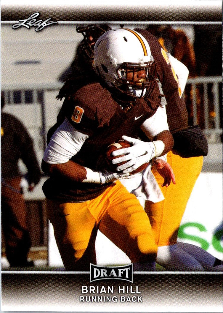 The 2017 Leaf Brian Hill #6 Wyoming Cowboys card is an excellent addition to any collection. Featuring an impressive image of the Cowboys' star running back, this card is sure to be a hit. The card is printed on premium stock and features a glossy finish, ensuring that it will stand up to years of wear and tear. The card also features Hill's full-color team logo, adding to its appeal. Whether you're a Cowboys fan or a collector, this card is a must-have. Add it to your collection today!