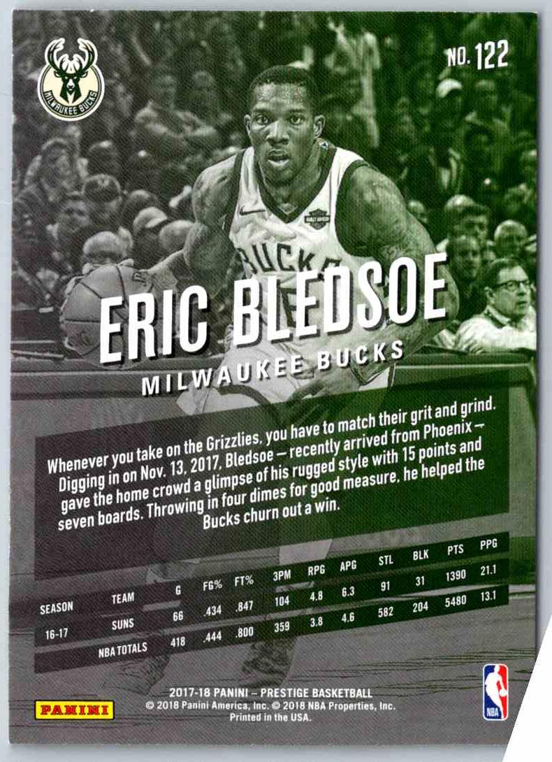 The 2017 Prestige Eric Bledsoe #122 basketball card is sure to be a prized possession for any Bledsoe fan or collector. This card features a stunning full-bleed design with a vibrant illustration of Bledsoe in mid-dunk. Bledsoe's delightful stats and bio are showcased on the card's back, making it a must-have for any fan. With its durable construction, this card is sure to last for years to come. A must-have for any Bledsoe fan, the 2017 Prestige Eric Bledsoe #122 card is sure to be a treasured item in any collection.
