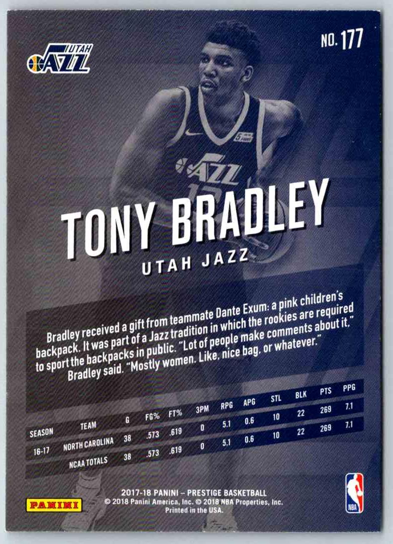 This 2017 Prestige Tony Bradley #177 is a must-have for any basketball fan! Featuring an action shot of Bradley in his signature Bulls jersey, this card is the perfect addition to your collection. The card also features a special Bulls logo and highlights his current stats and accomplishments. It is printed on premium cardstock, making it an impressive and lasting piece. Be sure to get your hands on this amazing card and add it to your collection today!