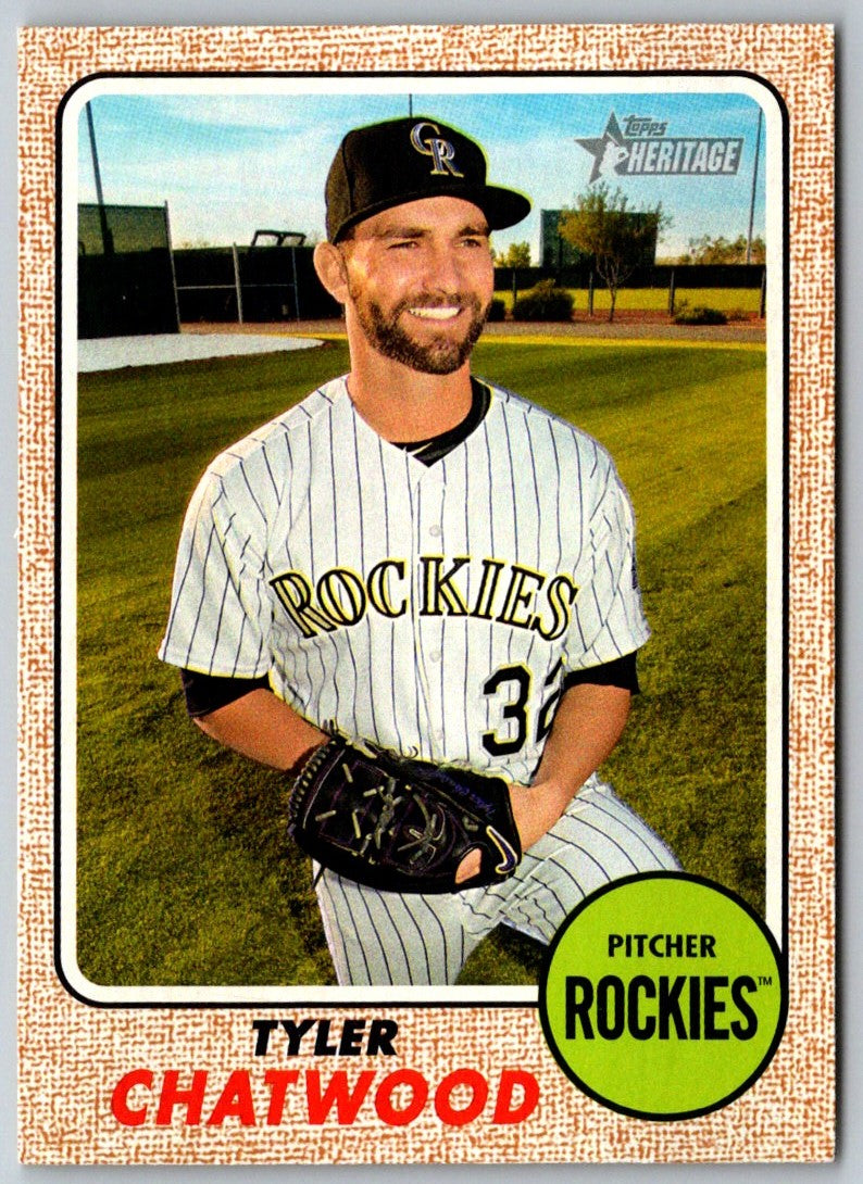 This 2017 Topps Heritage Tyler Chatwood #164 card is a must-have for any Colorado Rockies fan! The card shows Chatwood in his classic Rockies uniform, looking ready to hit the mound and deliver some strikes. His stats are featured on the back, giving you a full picture of his season performance. Chatwood has been a reliable starter for the Rockies and a fan favorite, making this card a great addition to any collection. If you're a Rockies fan, this card is a must-have!