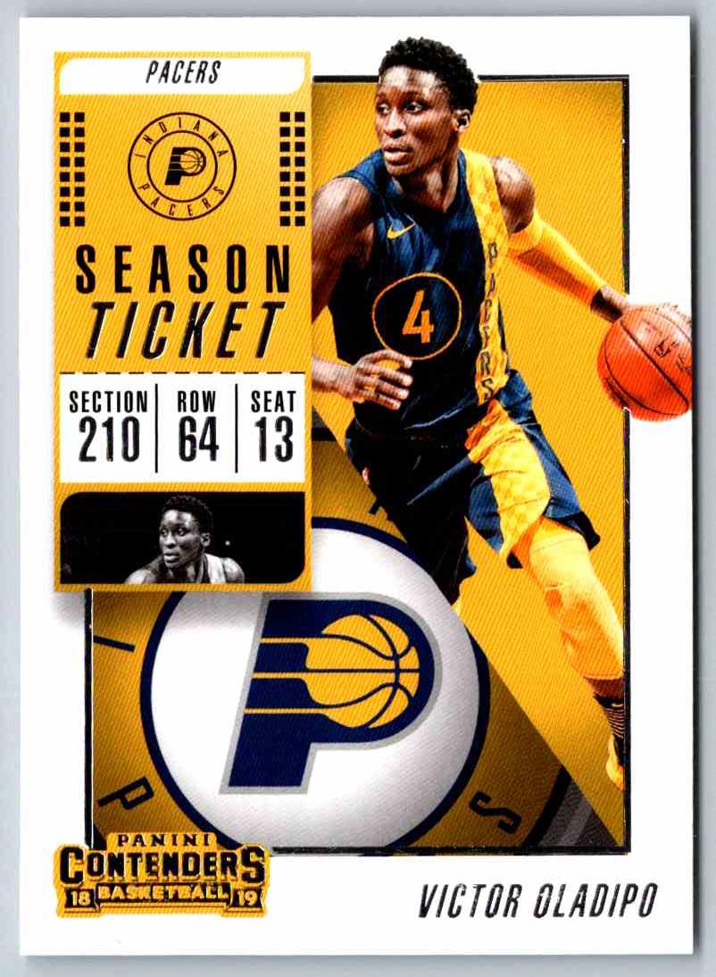 Be part of the team with the 2018 Contenders Victor Oladipo #58 card! This card features an action shot of Oladipo, a 6-time NBA All-Star, during a game against the Milwaukee Bucks. It captures the dynamism of Oladipo's game as he slams the ball into the hoop. It's a must-have for any fan of the Indiana Pacers or of Oladipo himself. Get your hands on this card and show your support for one of the best players in the NBA.