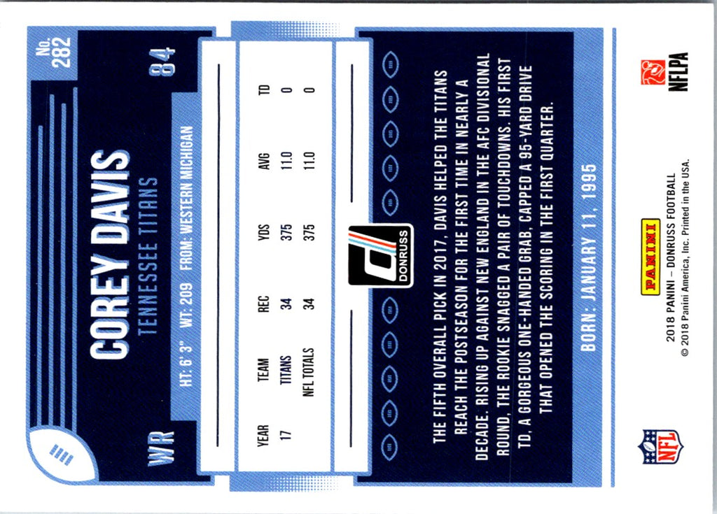 This 2018 Donruss Corey Davis #282 card from the Tennessee Titans features the standout wide receiver in all his glory. The card offers a full-color action image of Davis, along with his name, team name, and team logo. It’s a great way to commemorate Davis’s incredible career, and it’s sure to be a cherished keepsake for any Titans fan. Get your hands on this card now and add it to your collection of Titans memorabilia.