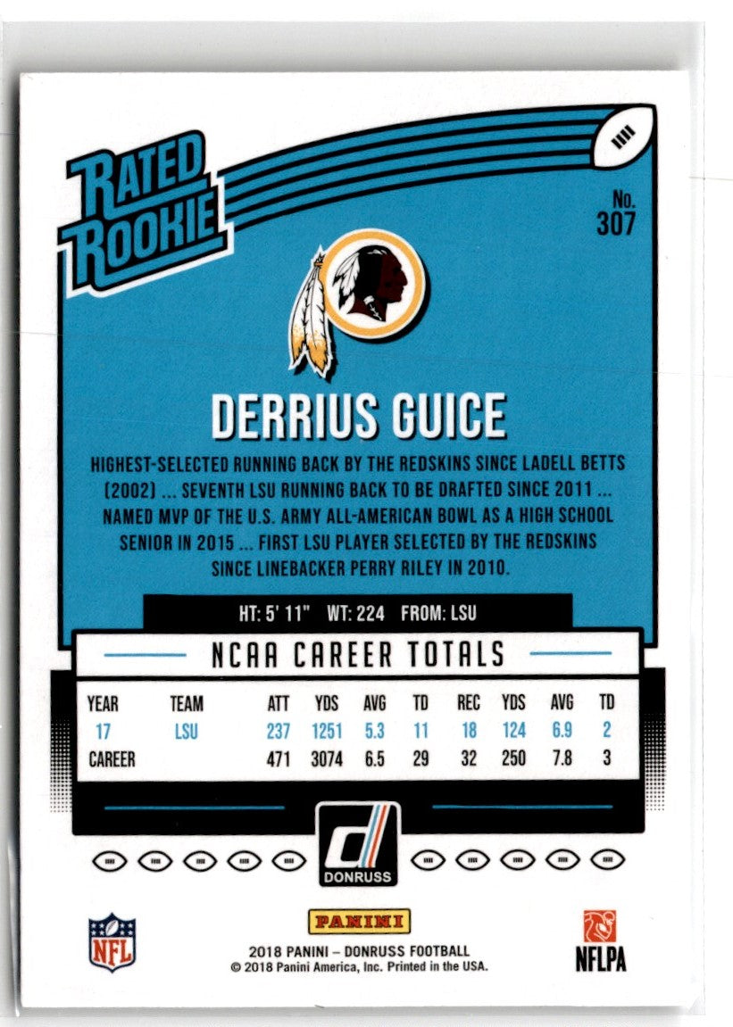 Description: 2018 Donruss Derrius Guice #307 Rookie