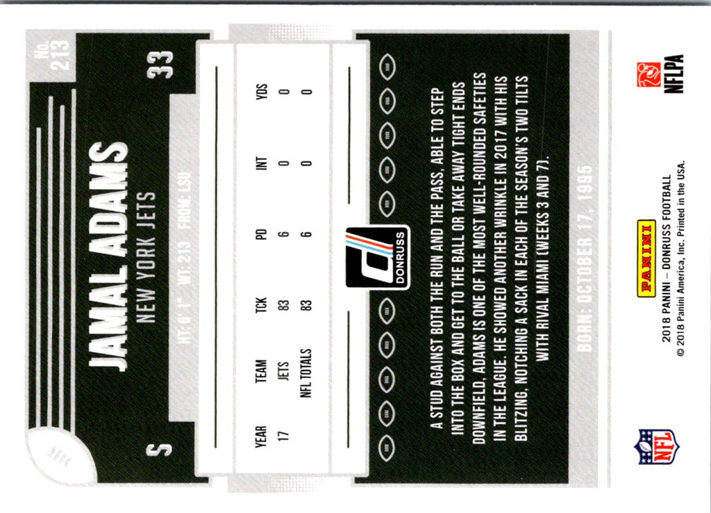 Description: 2018 Donruss Jamal Adams #213