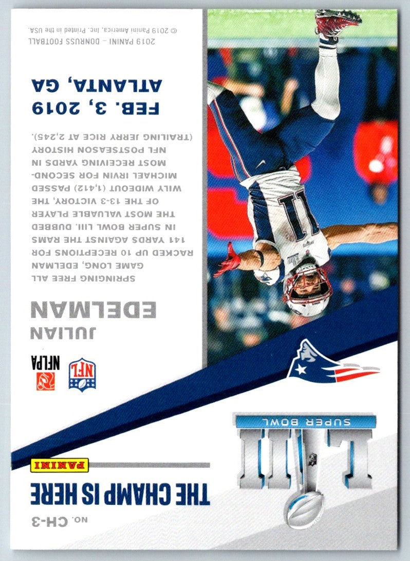 This 2018 Donruss Julian Edelman #186 card is a must-have for any New England Patriots fan! Celebrate the career of this dynamic wide receiver with this card featuring a full-color action shot of Edelman in his signature uniform. It's perfect for your collection or as a gift for any fan of the Patriots. Get yours today before they're gone!