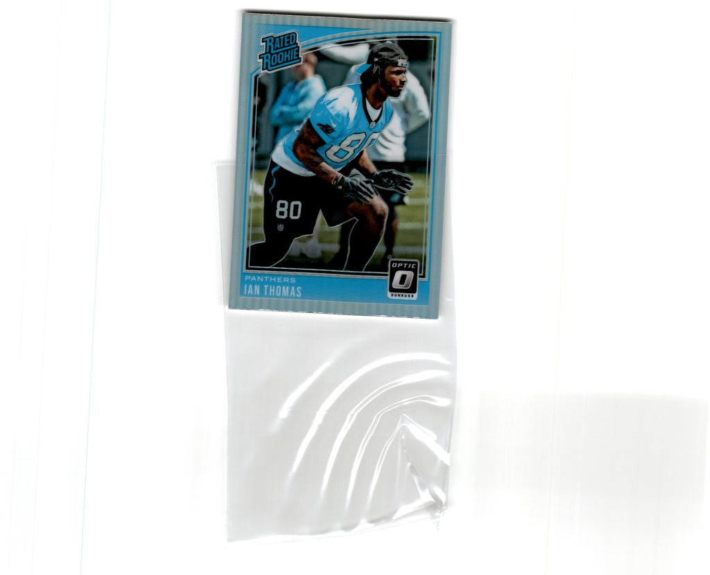 This 2018 Donrus Optic Ian Thomas #190 Carolina Panthers trading card is a must-have for Panthers fans or any collector of NFL memorabilia! It features a full-color photo of Thomas, and it is professionally printed with vibrant colors and sharp details that make it a truly unique collectible. The card is printed on high-quality card stock, making it perfect for framing or displaying in a card binder. It's sure to make a great addition to any fan's collection!