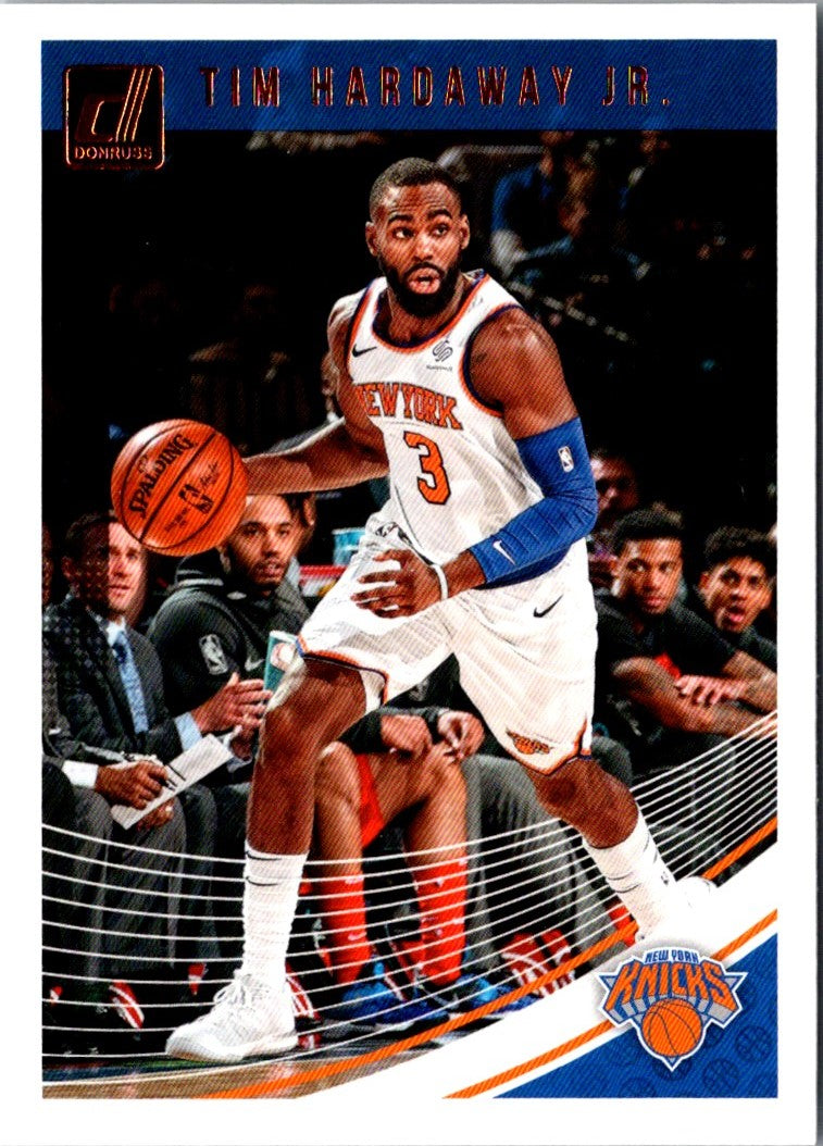 This 2018 Donruss Tim Hardaway Jr. #67 New York Knicks card is an essential for any Knicks fan! With vibrant colors and a glossy finish, the card highlights Hardaway Jr.'s stats and accomplishments. It's a great way to show your Knicks pride and support for the All-Star player. Get your hands on this card and show off your collection to friends and family!