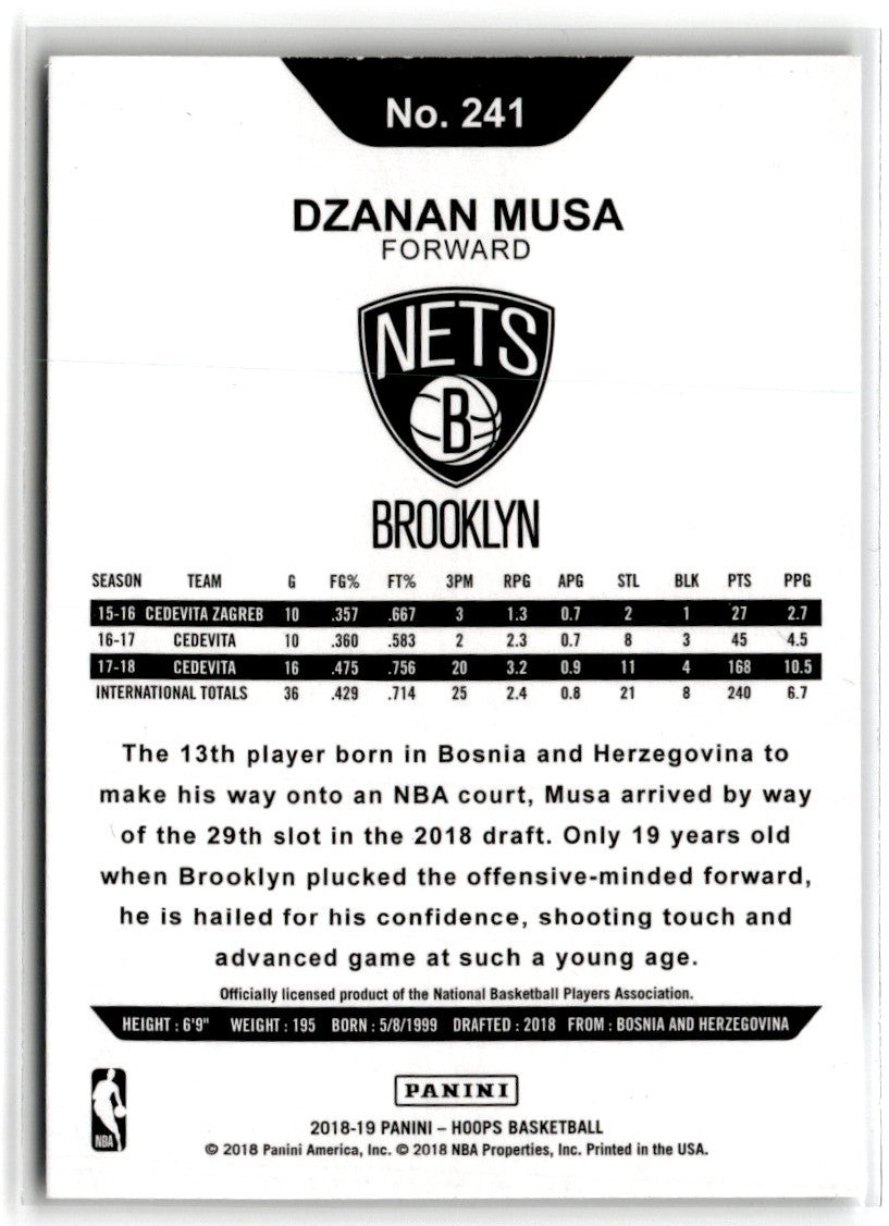 Description: 2018 Hoops Dzanan Musa #241 Rookie