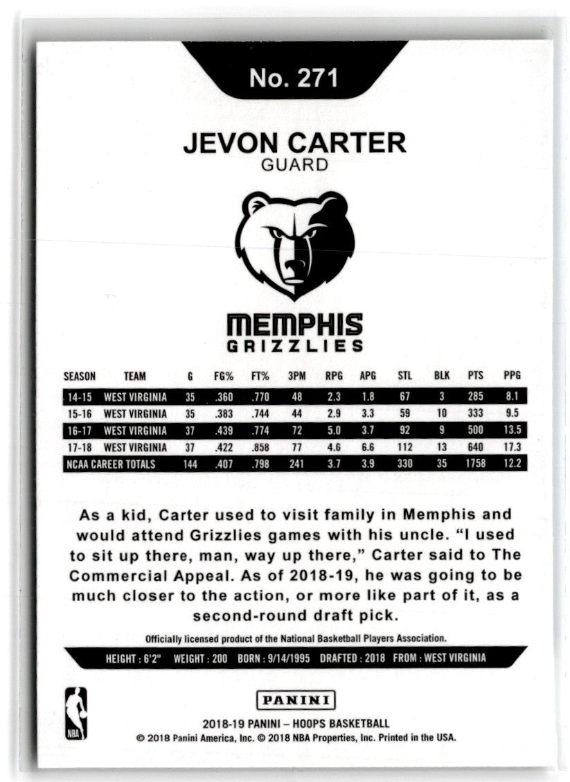 Description: 2018 Hoops Jevon Carter #271 Rookie