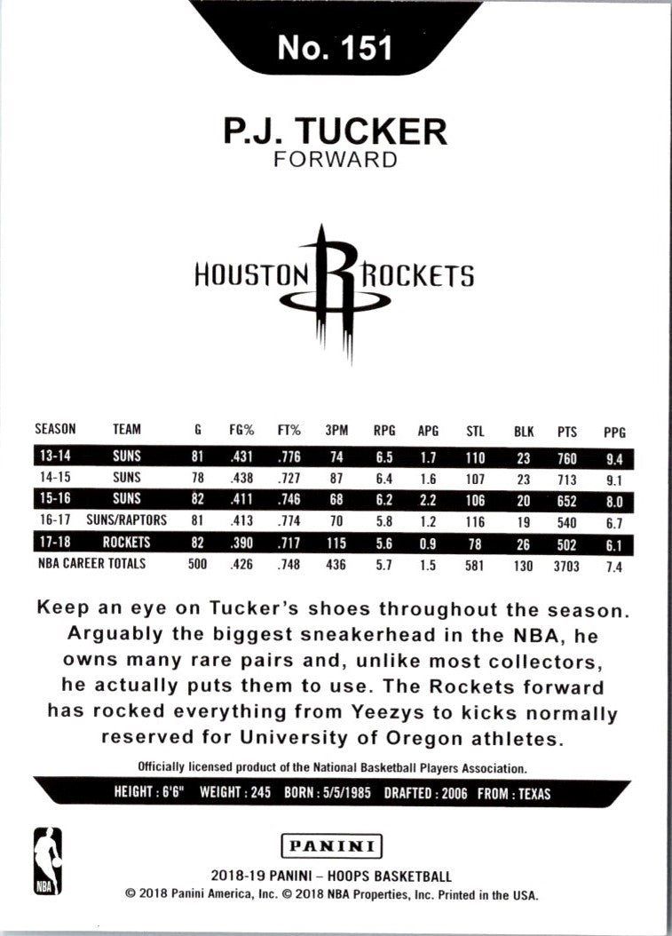 Description: 2018 Hoops Red Backs P.J. Tucker #151