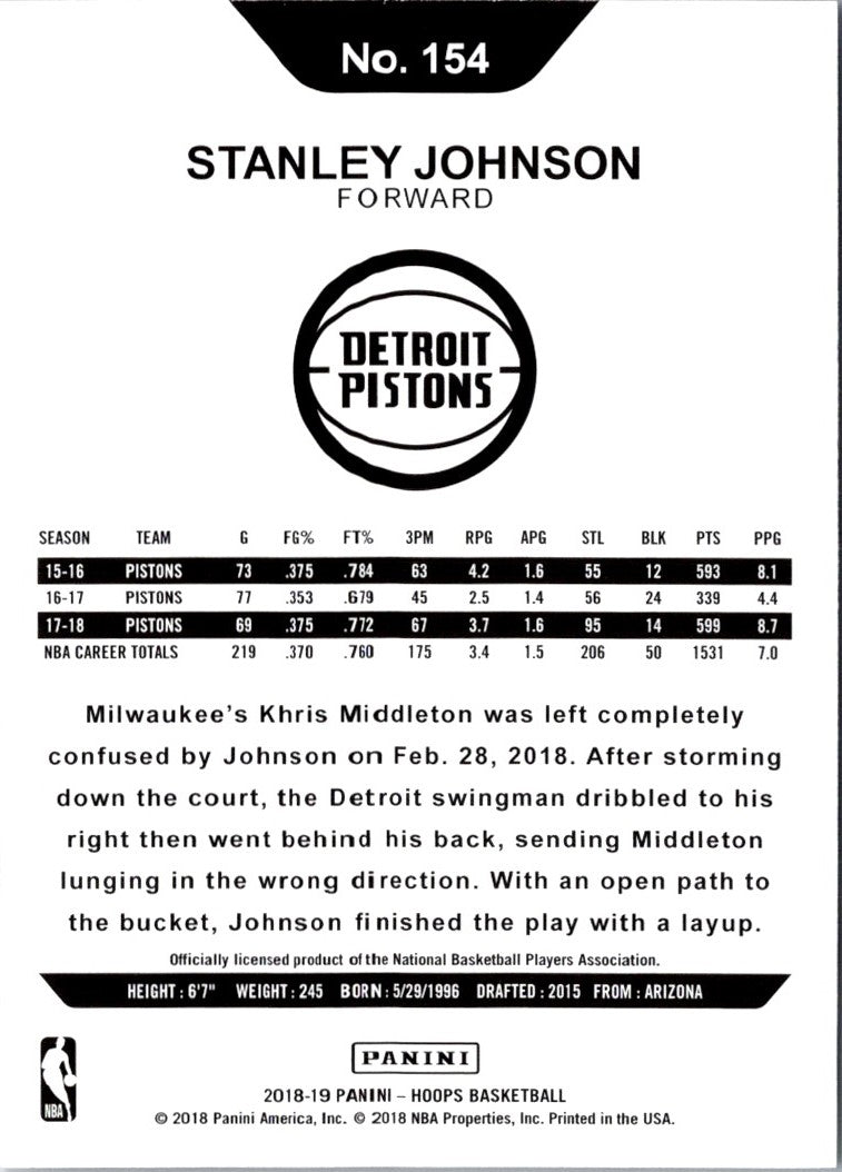 Description: 2018 Hoops Red Backs Stanley Johnson #154