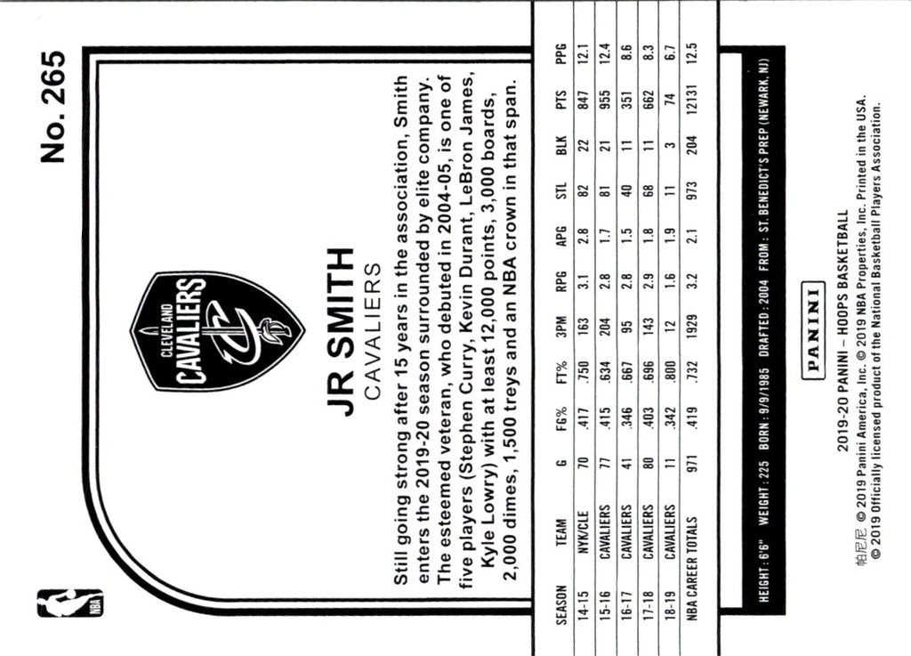 This 2018 Panini Absolute Memorabilia JR Smith #37 Cleveland Cavaliers card is a must-have for any Cavaliers fan! Featuring a vibrant, full-color image of JR Smith, this card will make a great addition to any sports memorabilia collection. It also features a detailed stats section on the back, so you can see just how much of an impact Smith made on the team. Show your Cavaliers pride and pick up this card today!