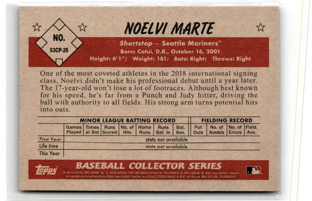 Description: 2018 Panini Elite Extra Edition Future Threads Silhouette Autographs Noelvi Marte #6