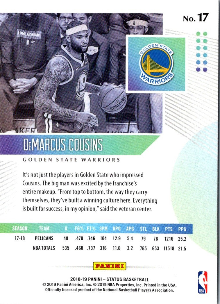 Description: 2018 Panini Status DeMarcus Cousins #17
