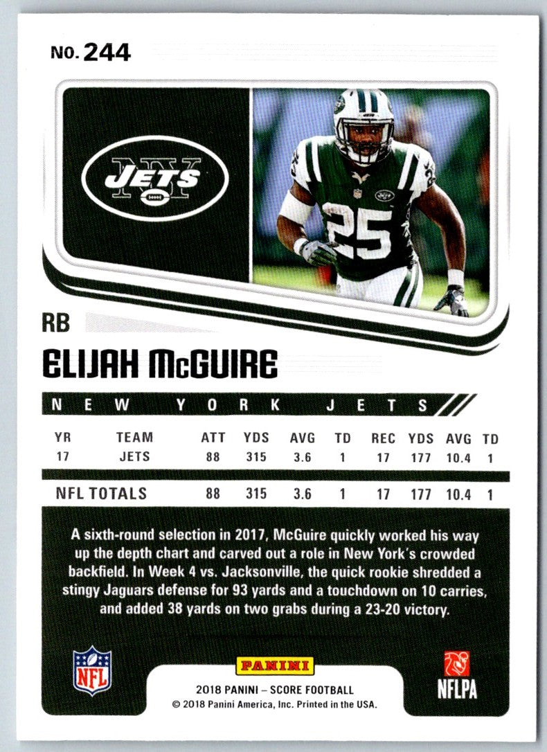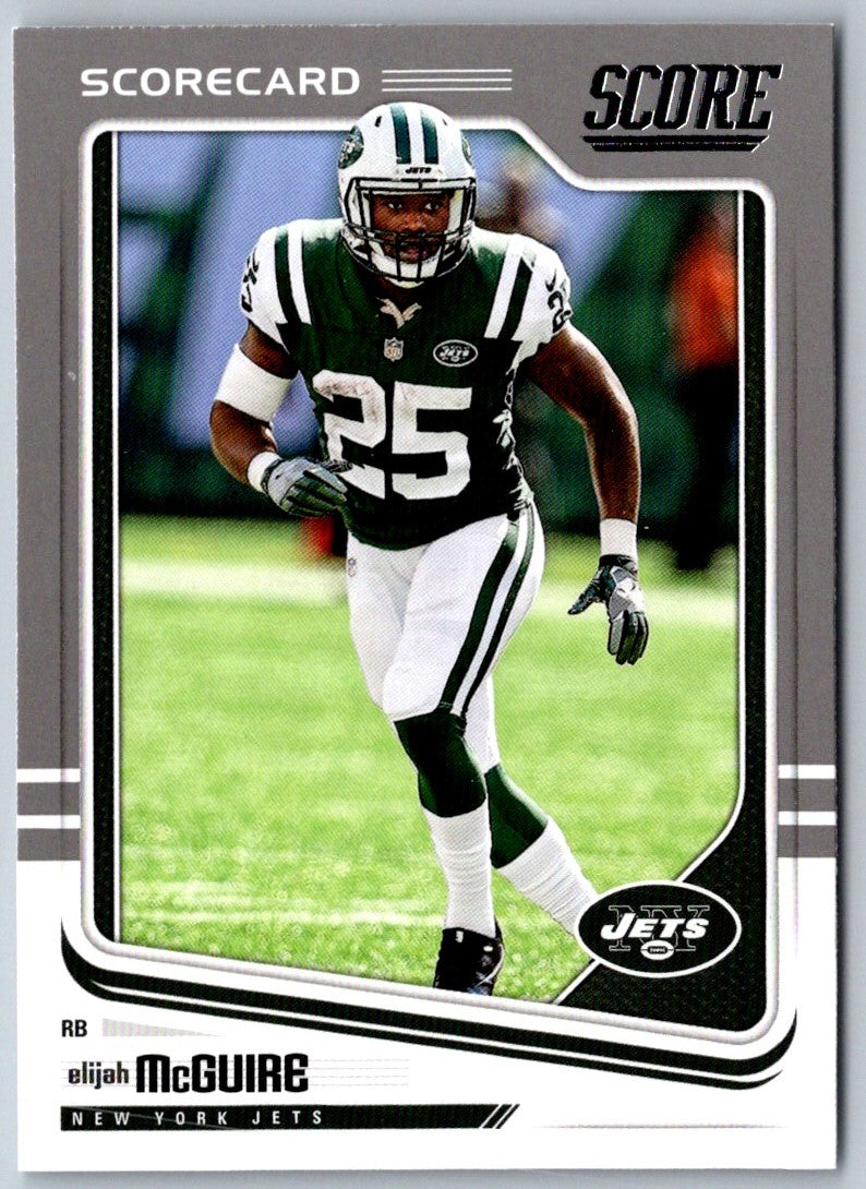 This 2018 Score Scorecard Elijah McGuire #244 New York Jets card features an iconic image of McGuire in action on the field. The card is printed on high quality card stock and features vibrant colors and crisp details. It is officially licensed by the NFL and includes McGuire's profile and career stats. This card is a perfect way to add a touch of New York Jets pride to your collection. It's ideal for mounting and displaying in any fan cave or man cave. Make sure you grab one before they're gone!