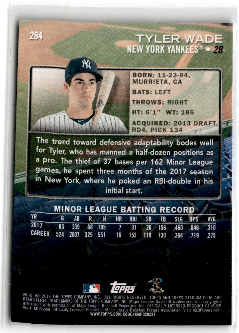 Description: 2018 Stadium Club Black Foil Tyler Wade #284