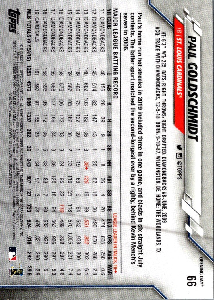2018 Topps Allen & Ginter Paul Goldschmidt #66