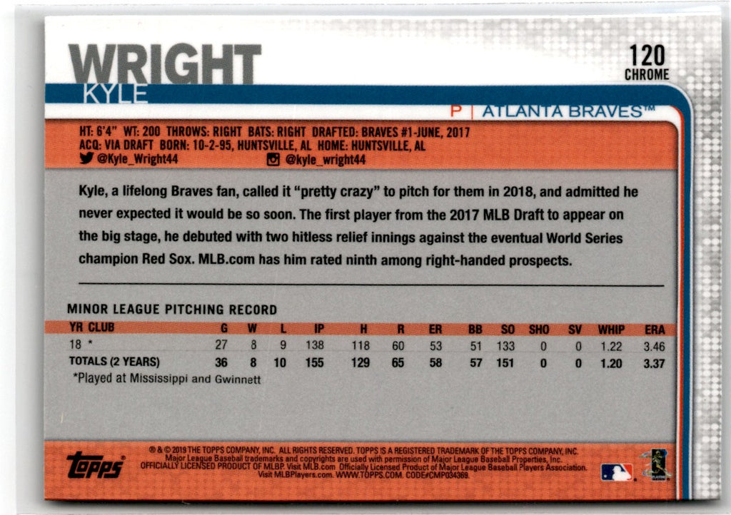 This 2018 Topps Chrome Atlanta Braves #135 card is a must-have for any Braves fan! Featuring pitcher Mike Foltynewicz, along with the iconic Braves logo, this card will make a great addition to your collection. It's printed on high-quality chromium stock for a sharp look and long-lasting durability. With the latest design technology, this card is sure to have you marveling at the stunning details it has to offer. Show off your Braves pride and add this card to your collection today!