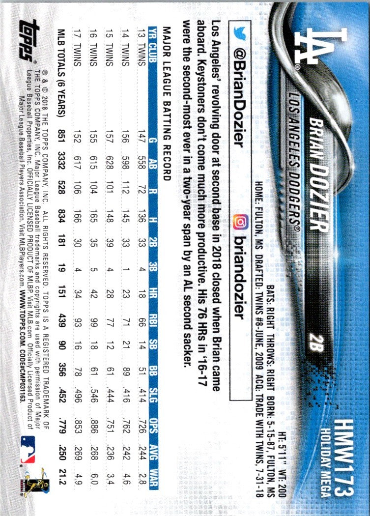 2018 Topps Holiday Brian Dozier #HMW173