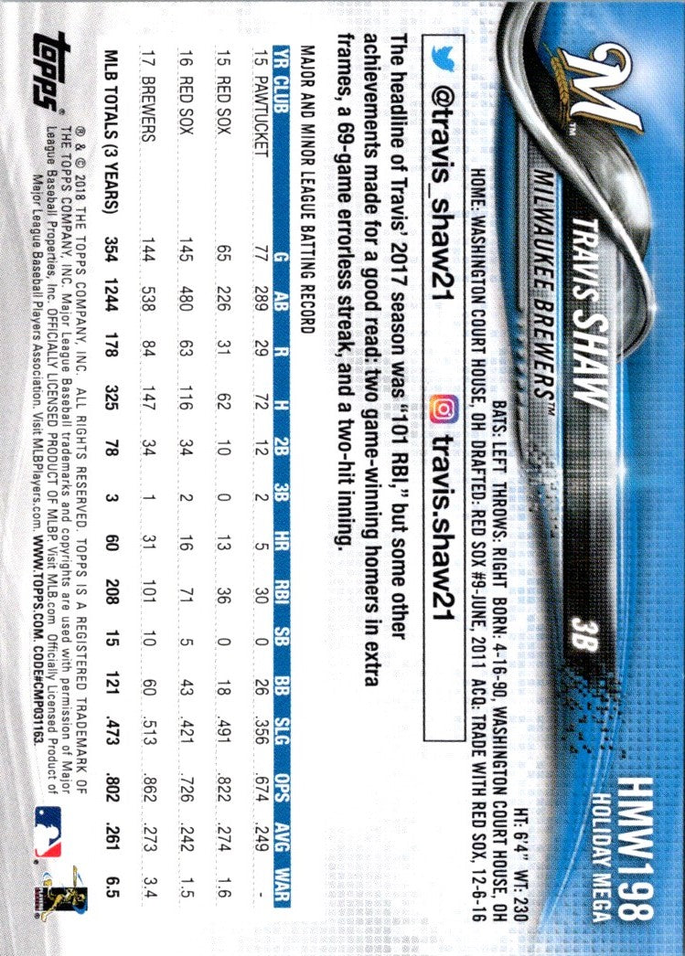 2018 Topps Holiday Travis Shaw #HMW198