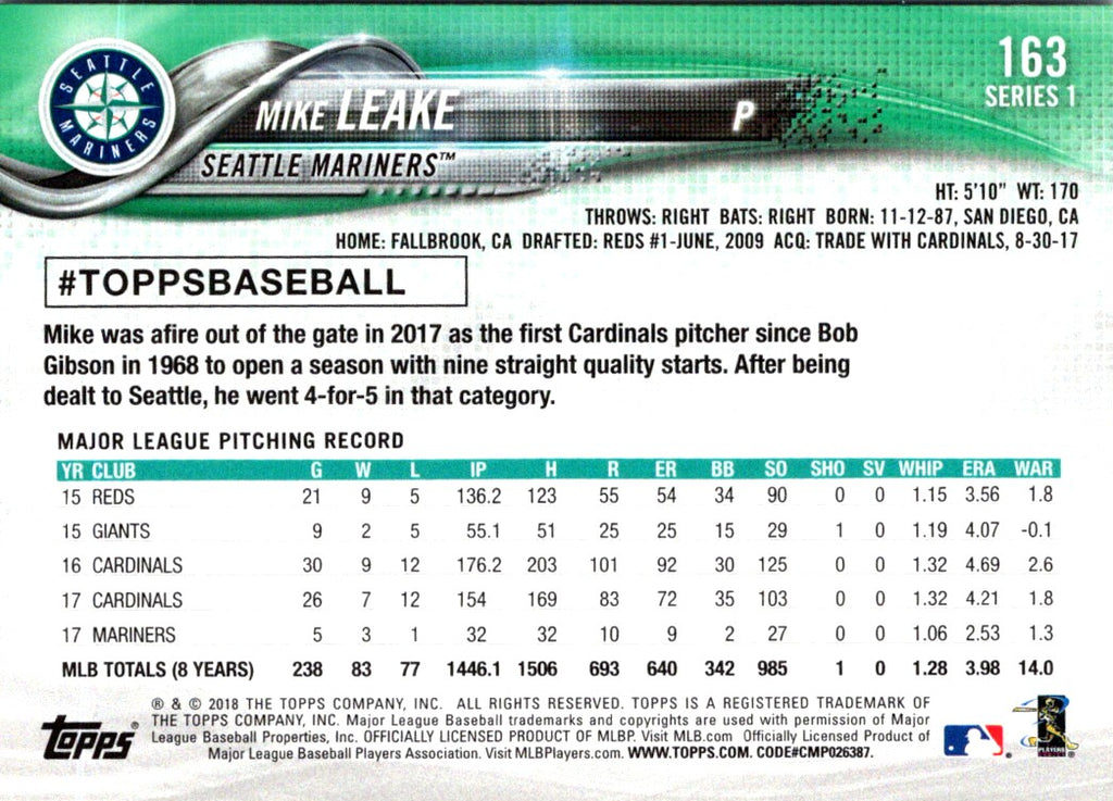 Description: 2018 Topps Mike Leake #163