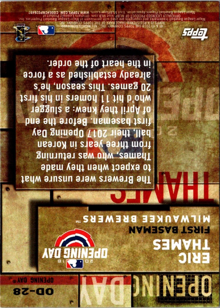 2018 Topps MLB Opening Day Eric Thames #OD-28