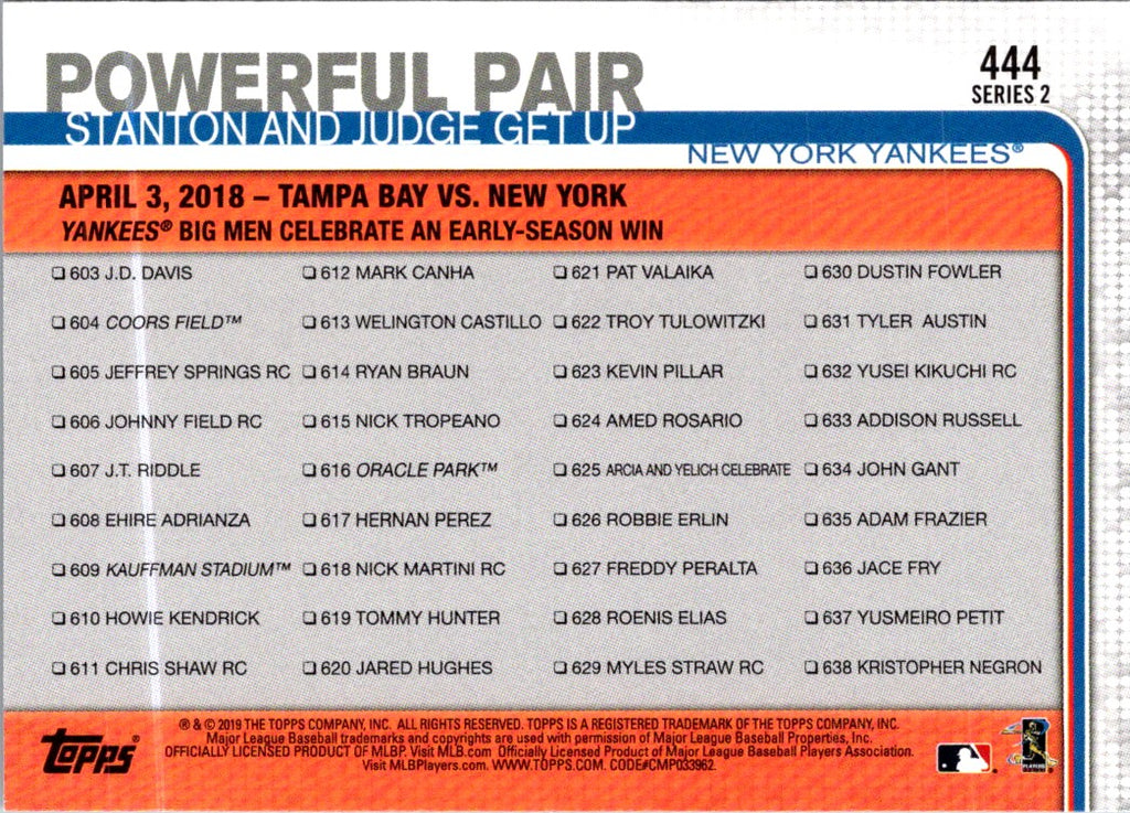 Description: 2018 Topps New York Yankees #444
