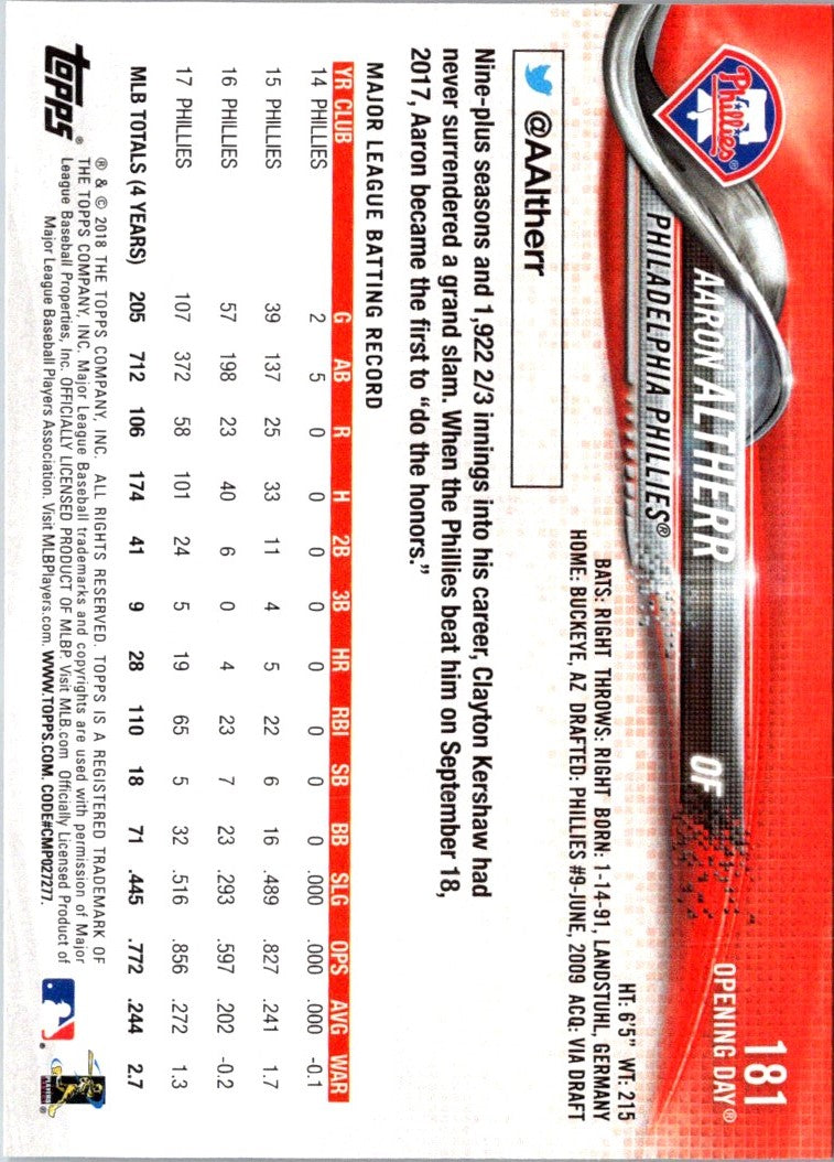 Description: 2018 Topps Opening Day Aaron Altherr #181