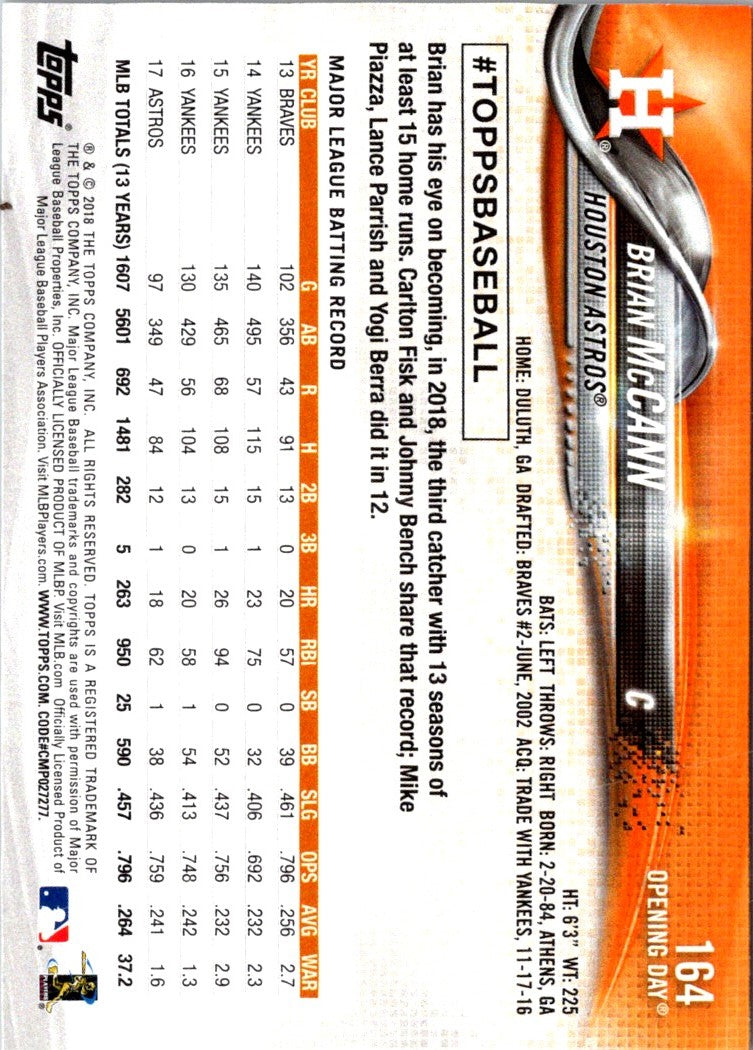 2018 Topps Opening Day Brian McCann #164