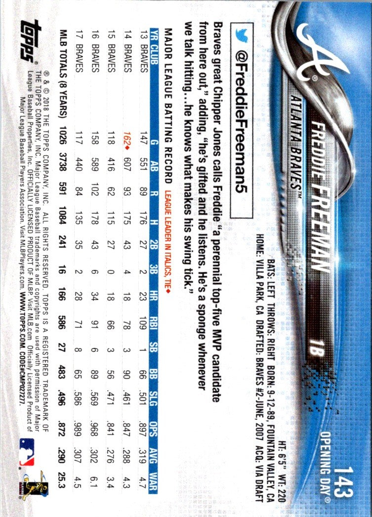 Description: 2018 Topps Opening Day Freddie Freeman #143