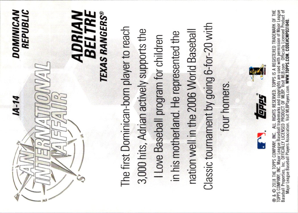 2018 Topps Update An International Affair Black Adrian Beltre #IA-14