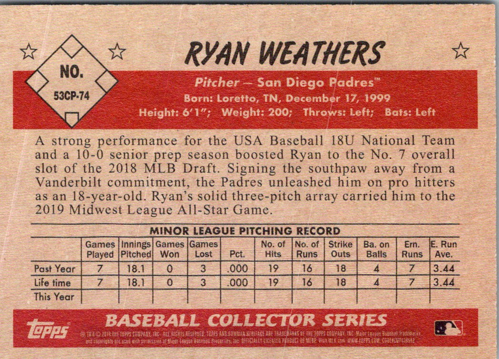 Description: 2019 Choice Midwest League All-Stars Ryan Weathers #17