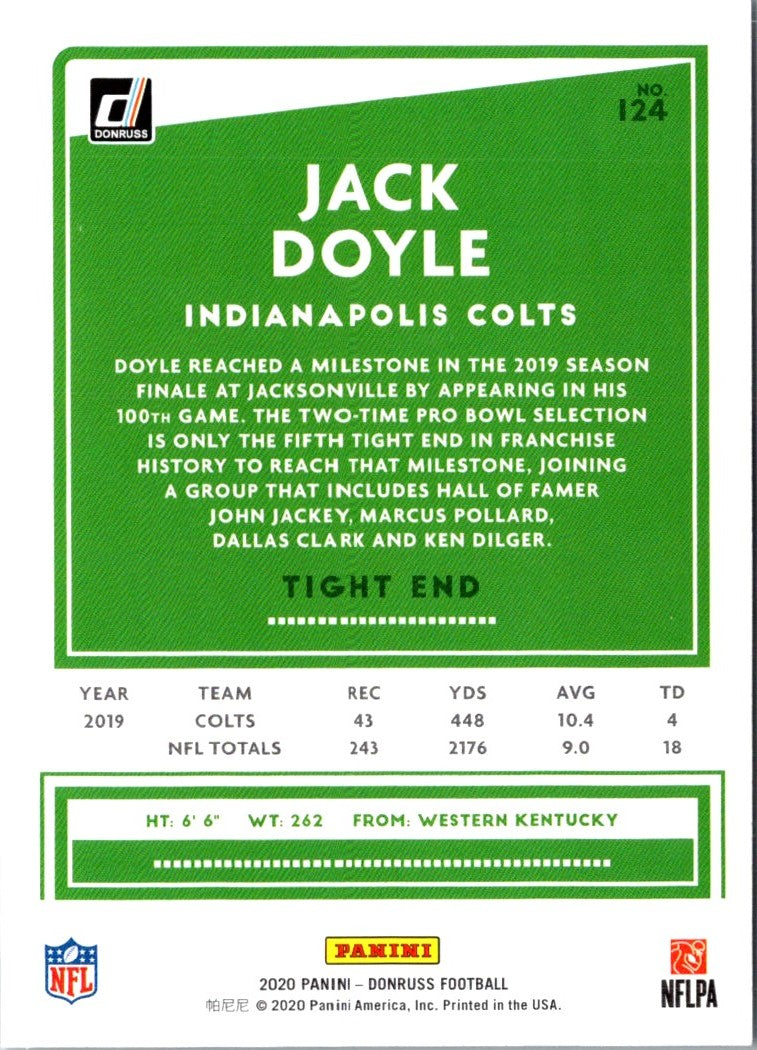 Jack Doyle is a reliable tight end for the Indianapolis Colts. This 2020 Donruss card features Doyle in his blue and white Colts uniform, ready to make a play. His stats for 2019 are printed on the back, a reminder of his successful campaign. Doyle's card also features a full-color action photo, which captures his power and athleticism. This card is perfect for any Colts fan or collector, and will be a great addition to any collection.