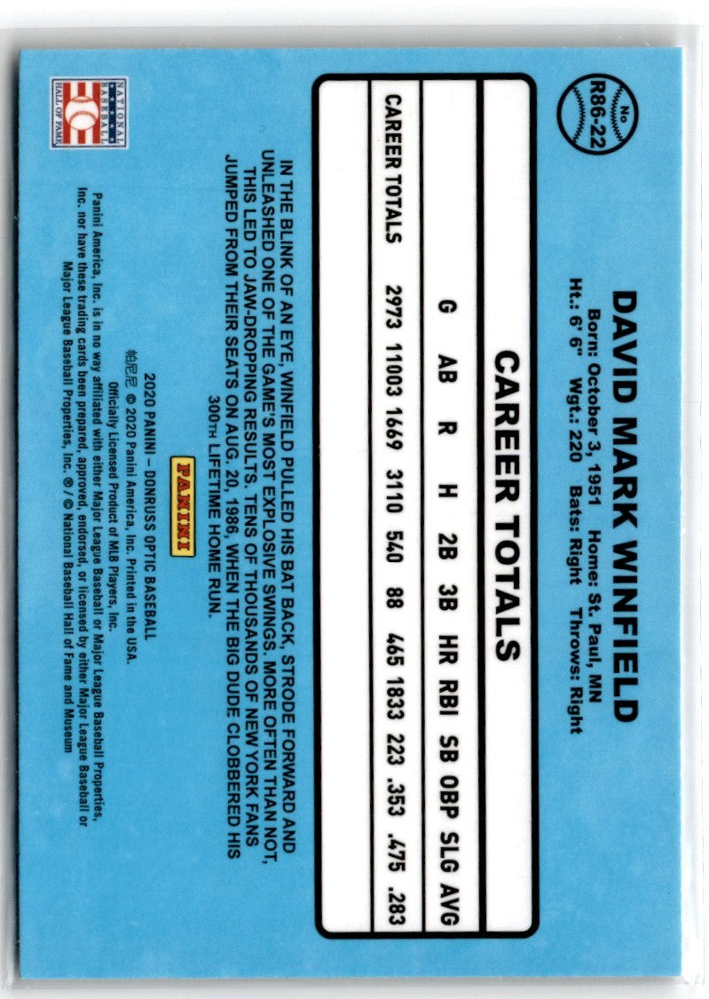 Description: 2020 Panini Absolute Baseball Dave Winfield #6