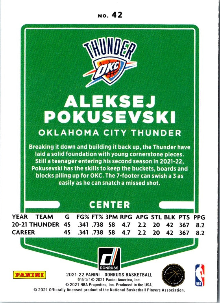 Description: 2021 Donruss Aleksej Pokusevski #42