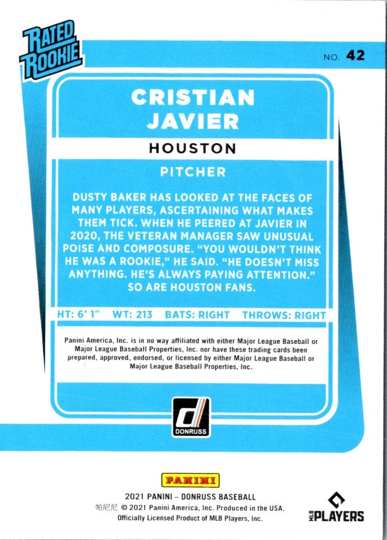 Description: 2021 Donruss Blue Cristian Javier #42