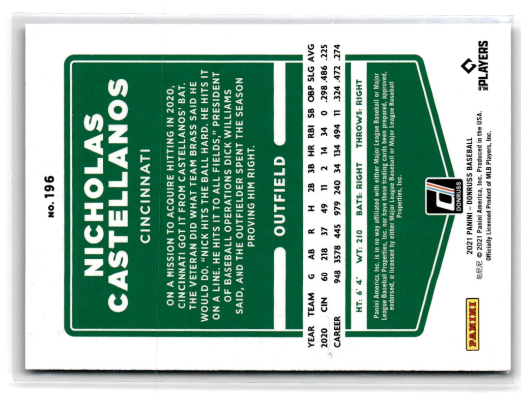 Description: 2021 Donruss Holo Blue Nicholas Castellanos #196