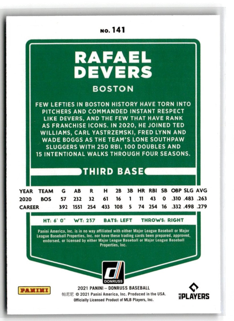 Description: 2021 Donruss Holo Blue Rafael Devers #141