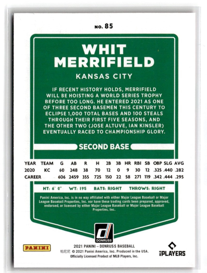 Description: 2021 Donruss Holo Orange Whit Merrifield #85