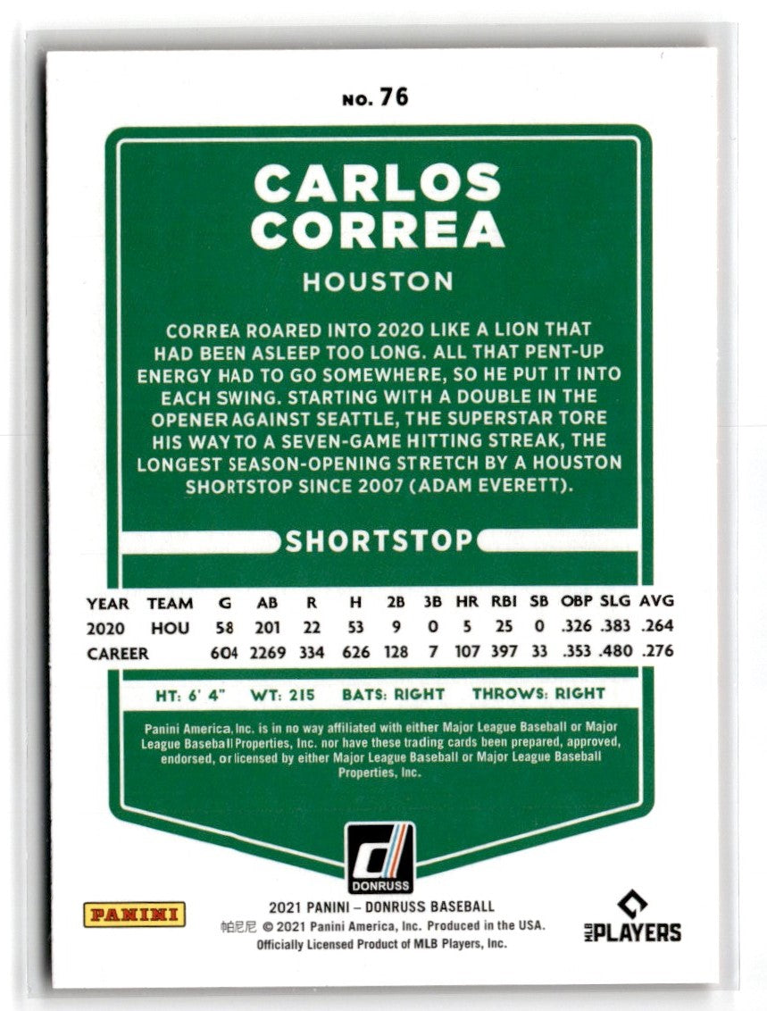 Description: 2021 Donruss Holo Red Carlos Correa #76
