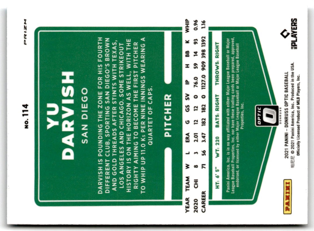 Description: 2021 Donruss Optic Carolina Blue & White Yu Darvish #114