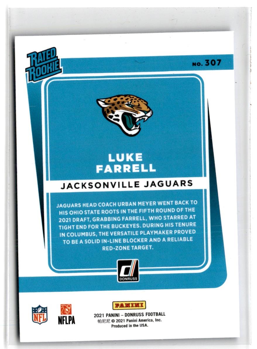 This 2021 Donruss Optic Rated Rookie Preview card featuring Luke Farrell of the Jacksonville Jaguars is the perfect addition to your collection! With its sharp, crisp design, the card features a full-color photograph of Farrell in his home team's uniform. The back of the card displays his vital stats and information about his accomplishments during his college career. Own a piece of NFL history with this card and stand out from the crowd!