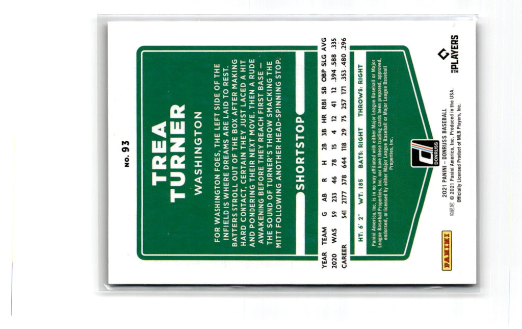 Description: 2021 Donruss Red Trea Turner #93 0283/2021