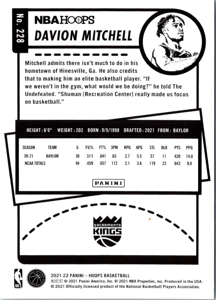 Description: 2021 Hoops Davion Mitchell #228 Rookie