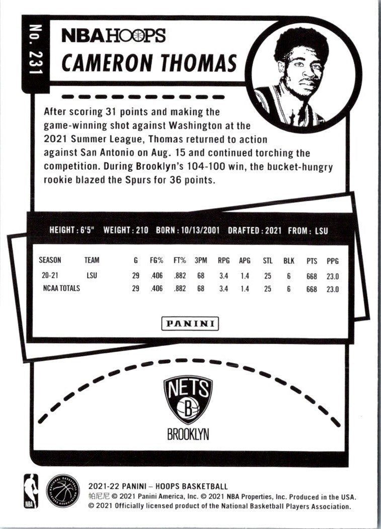 Description: 2021 Hoops Red Backs Cameron Thomas #231