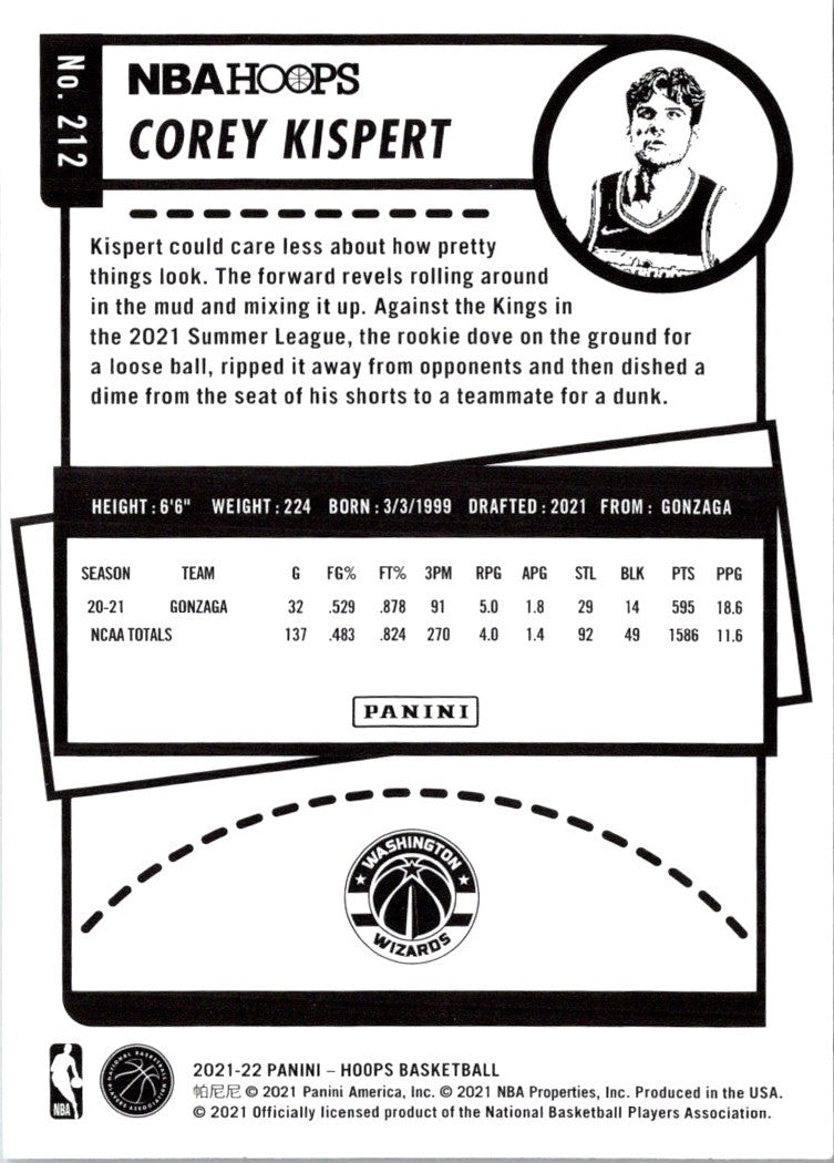 Description: 2021 Hoops Red Backs Corey Kispert #212