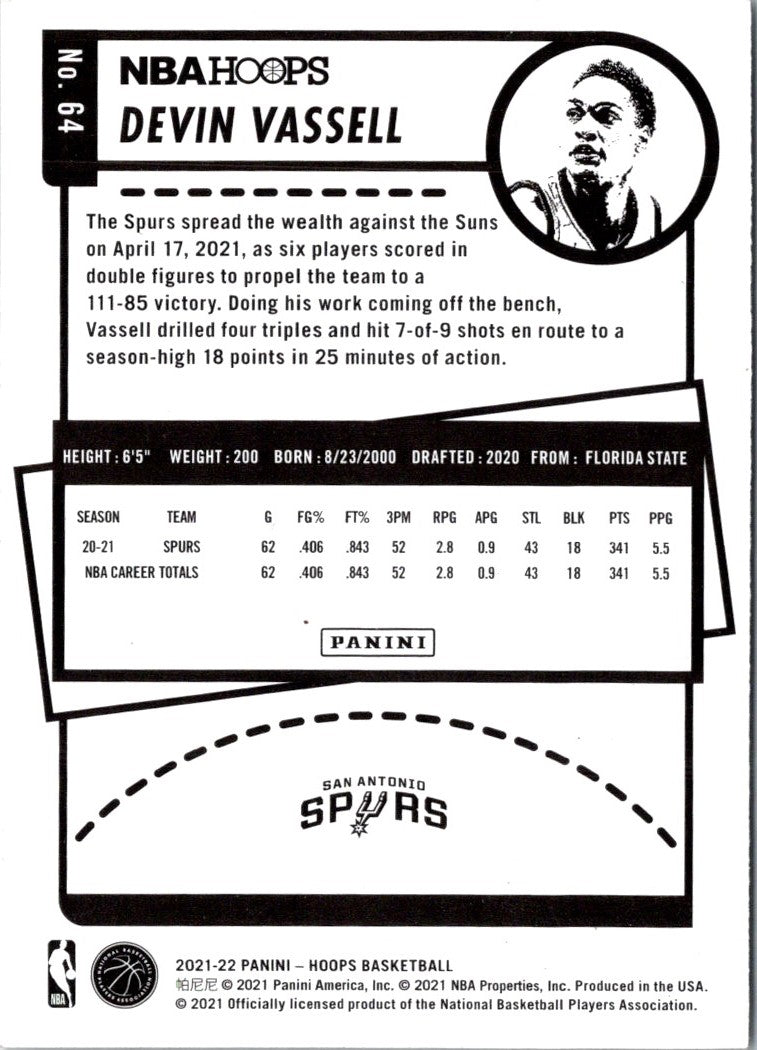 Description: 2021 Hoops Red Backs Devin Vassell #64